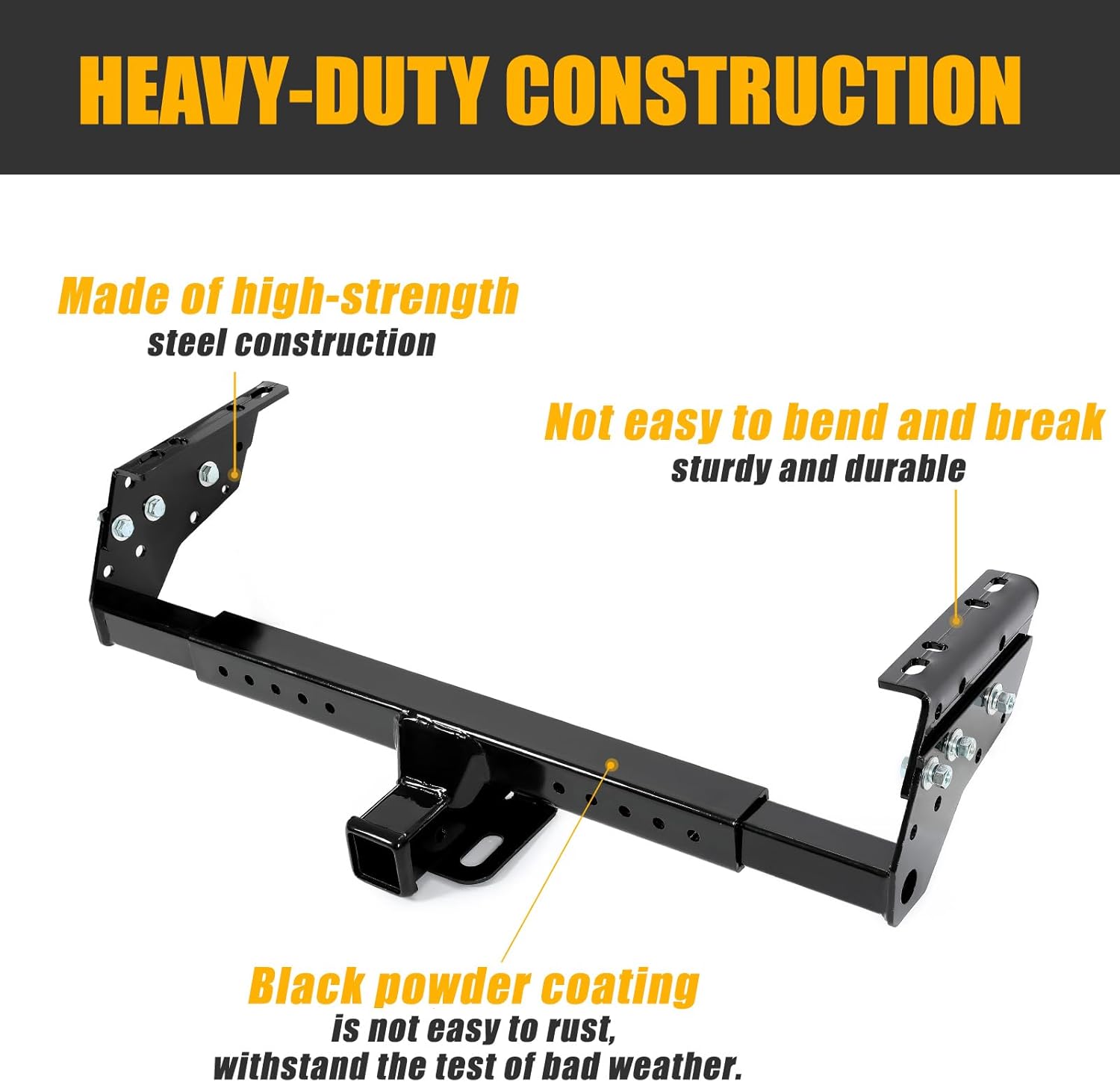 Feature: The 2" - Class III Trailer Hitch Receiver Towing is made of high-strength steel construction, which is not easy to bend and break, sturdy and durable. Black powder coating is not easy to rust, withstand the test of bad weather.