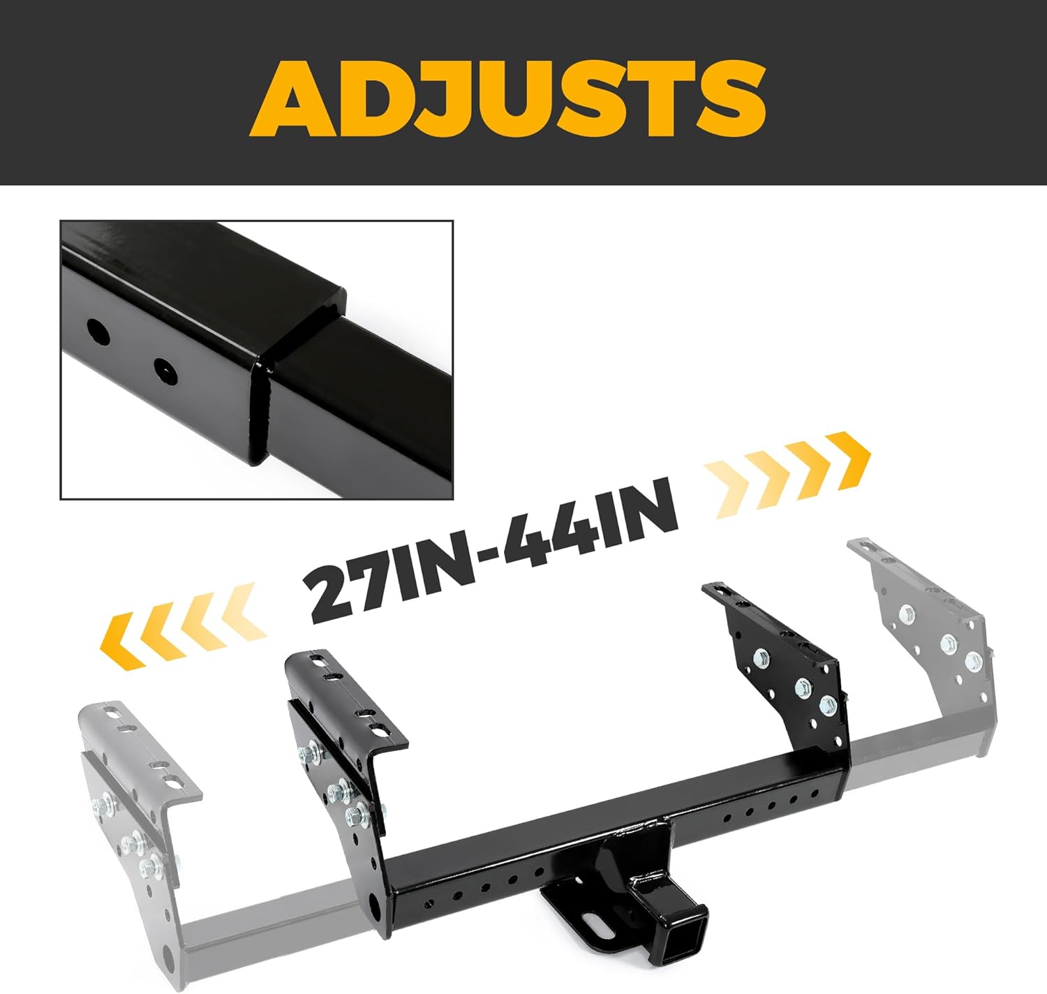 Fitment: 2" - Class III Trailer Hitch Receiver Towing Compatible with Select Chevrolet Chrysler Dodge Ford GMC Isuzu Jeep Mazda Nissan Plymouth. Please see below for specific adaptation information.