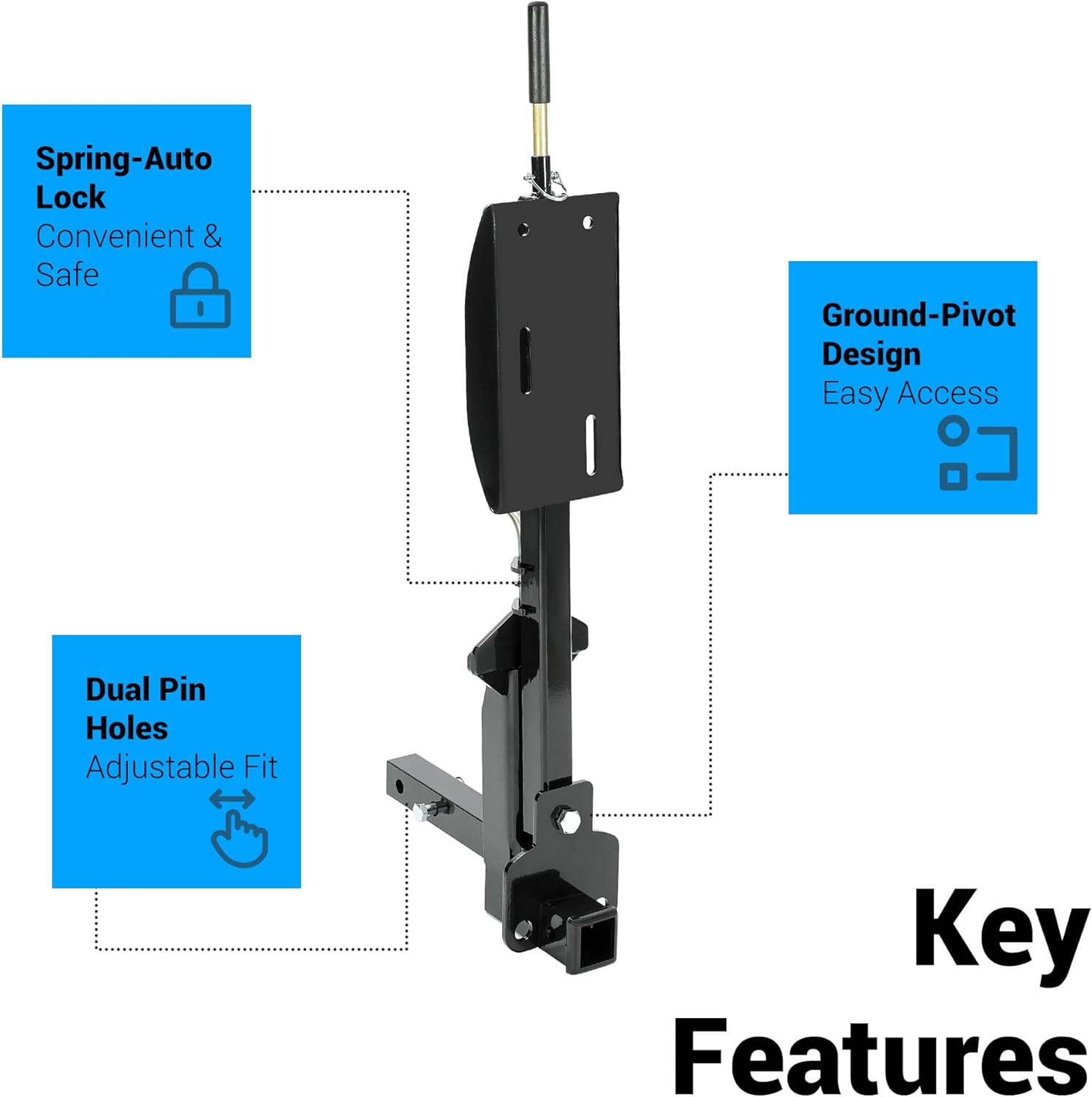 FunctionIt is designed with 2 inch receiver for towing a car or attaching a bike rack or accessory. It provides a convenient location to store and transport the spare tire