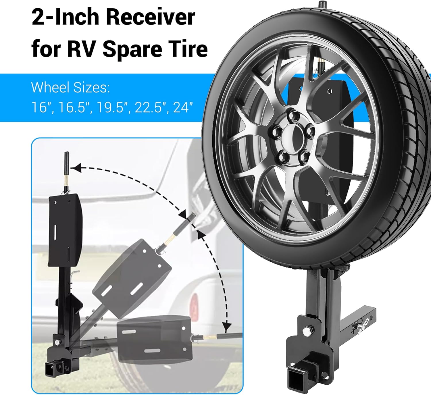 Function: It is designed with 2 inch receiver for towing a car or attaching a bike rack or accessory. It provides a convenient location to store and transport the spare tire, ensuring that the spare tire is always available in an emergency, enhancing the driving experience on the road.