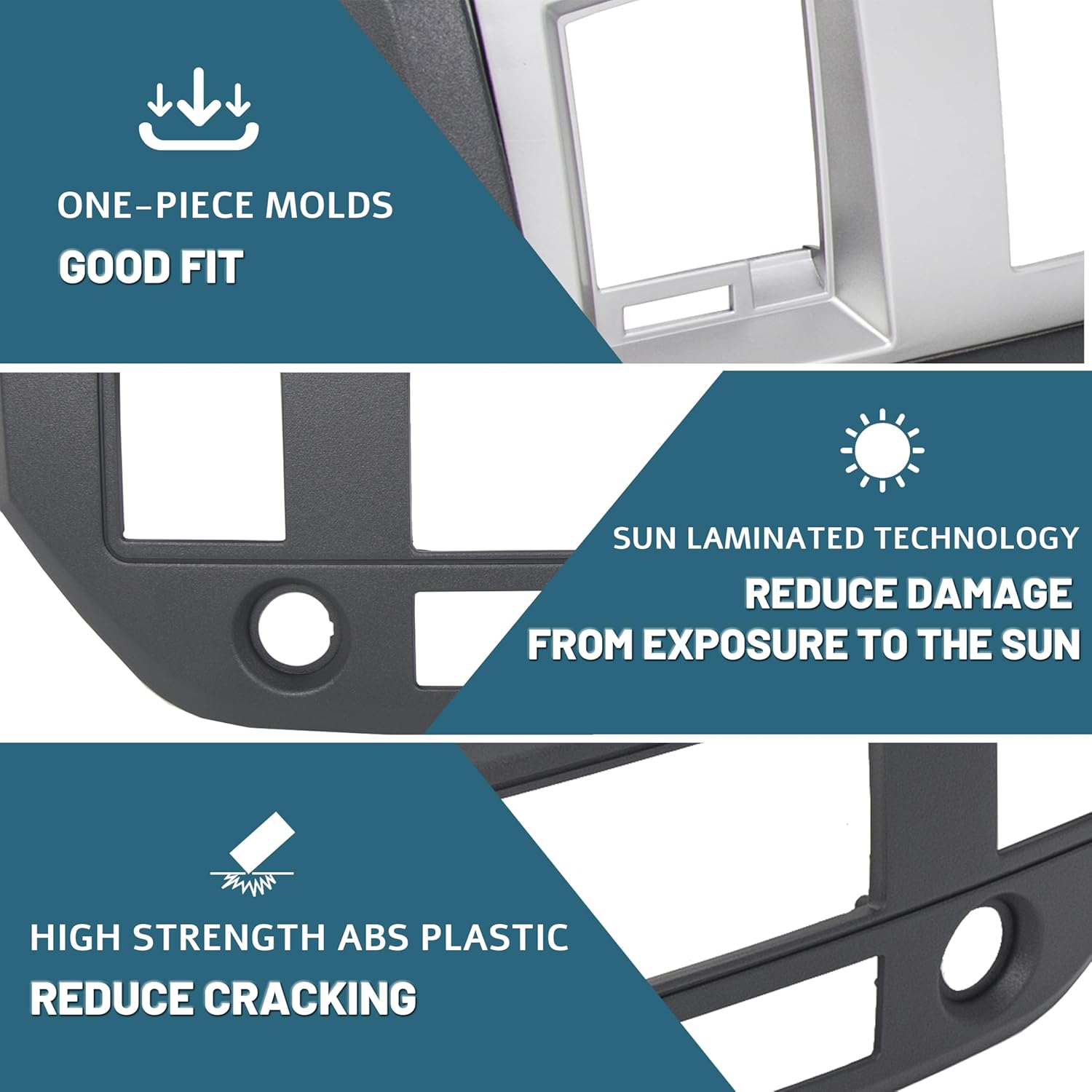 Features: Used to replace worn Double din housing that have been damaged before. Made of good ABS plastic, more durable. The silver and slate gray exterior enhances the car' - s aesthetics. In addition, it can bring you an excellent driving experience. (Our bezels did not come with a cigarette lighter or vent)